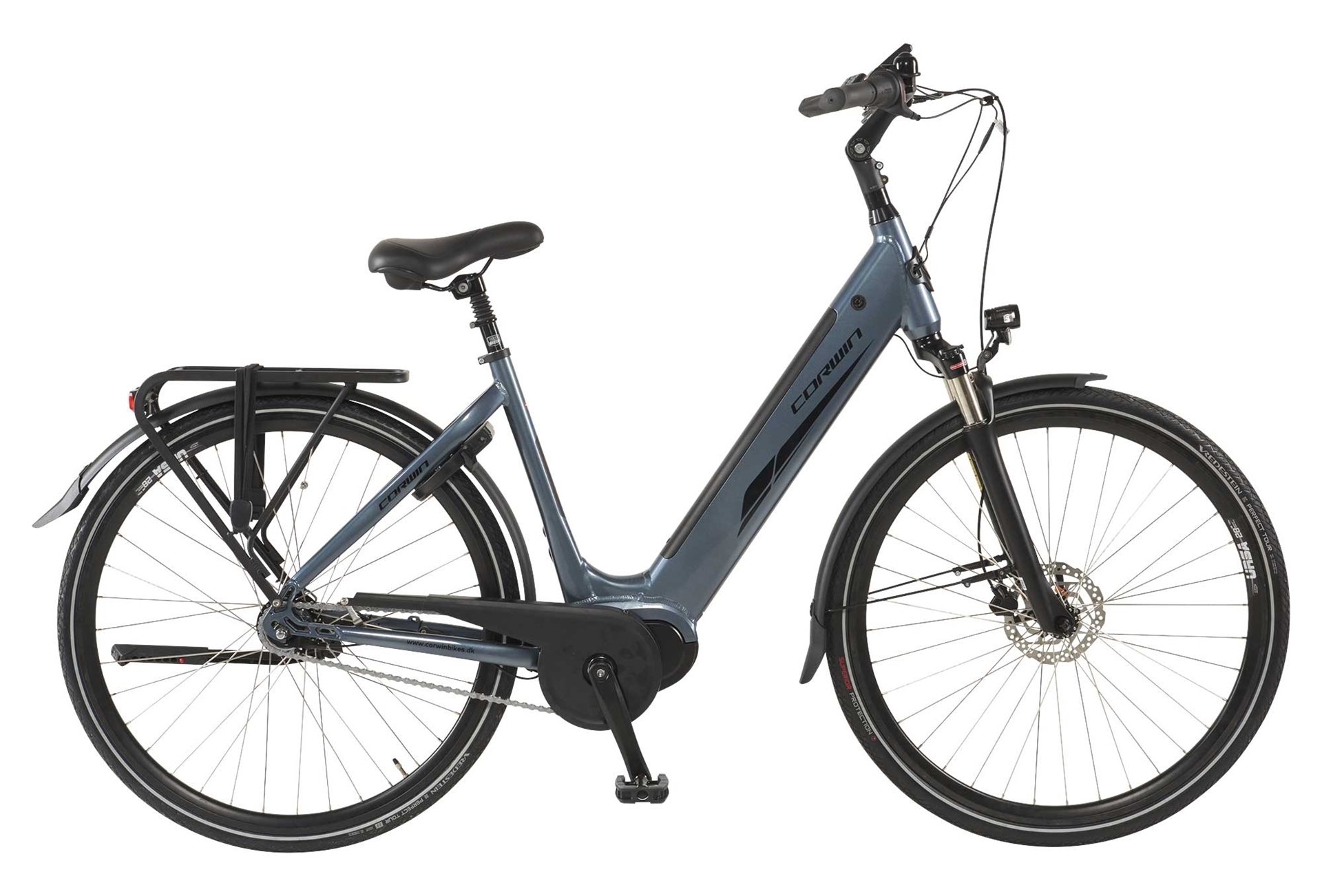 Så er der rendyrket luksus elcykel, markedets stærkeste Centermotor MAXDRIVE fra Bafang med 80nm. Corwin Elite 500+ er med super kraftig centermotor og et integreret batteri med den nyeste batteri teknologi, 36 volt og 14ah, på imponerende 500 watt timer der giver ekstra lang rækkevidde. Kraftig TEKTRO hydraulisk skivebremse system på forhjulet samt fodbremse med bremselysfunktion.